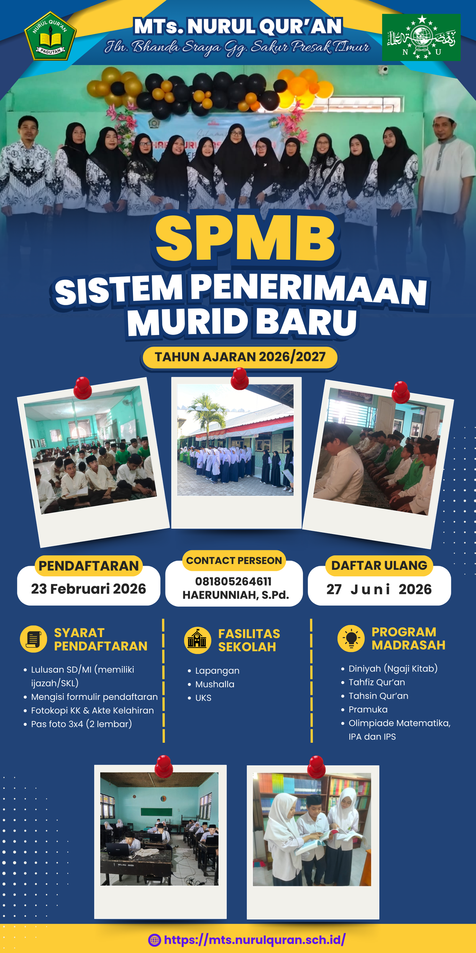 Selamat datang di website resmi MTs. Nurul Qur'an Pagutan! MTs. Nurul Qur'an Pagutan adalah sebuah lembaga pendidikan yang berkomitmen...